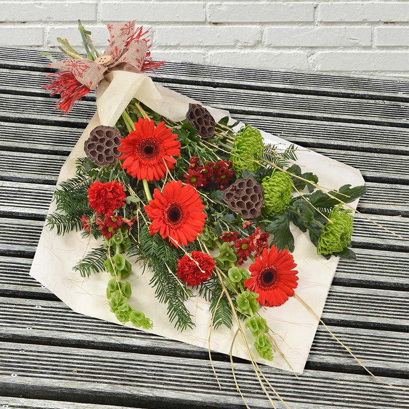 A classic style bouquet with a modern twist, the perfect Christmas pressent.